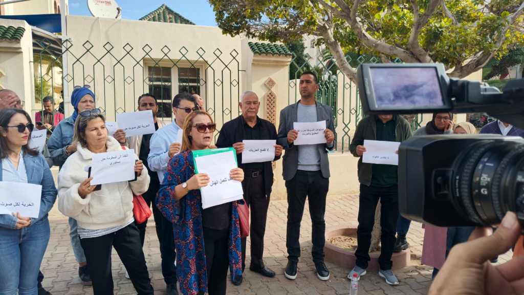 ورفع المحتجون خلال الوقفة سلسلة من الشعارات الرافضة للتضييق على المهنة، من بينها: “الصحافة ليست جريمة”، “الصحافة خطّ أحمر”، “تشغيل خريجي معهد الصحافة حقّ مش مزية”، “لا لتصفية الإعلام”، “أبواب مغلقة على الصحافة… زنازين موصدة”، “منع المعلومة ضرب لحق المواطن”، “لا لمرسوم القمع 54”، “ارفعوا أيديكم عن حرية العمل الصحفي”.