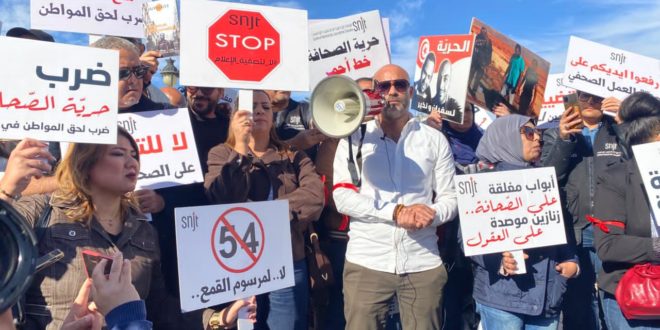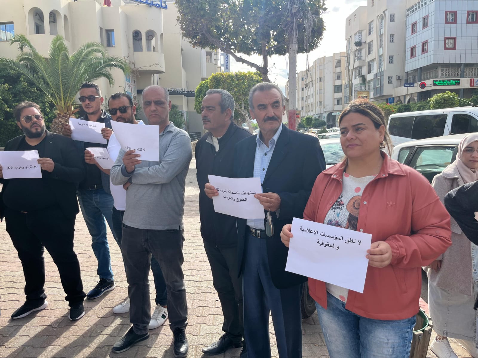 ورفع المحتجون خلال الوقفة سلسلة من الشعارات الرافضة للتضييق على المهنة، من بينها: “الصحافة ليست جريمة”، “الصحافة خطّ أحمر”، “تشغيل خريجي معهد الصحافة حقّ مش مزية”، “لا لتصفية الإعلام”، “أبواب مغلقة على الصحافة… زنازين موصدة”، “منع المعلومة ضرب لحق المواطن”، “لا لمرسوم القمع 54”، “ارفعوا أيديكم عن حرية العمل الصحفي”.